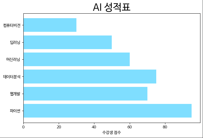 plt.title('AI 캠프 수강생 성적표', fontsize=22)