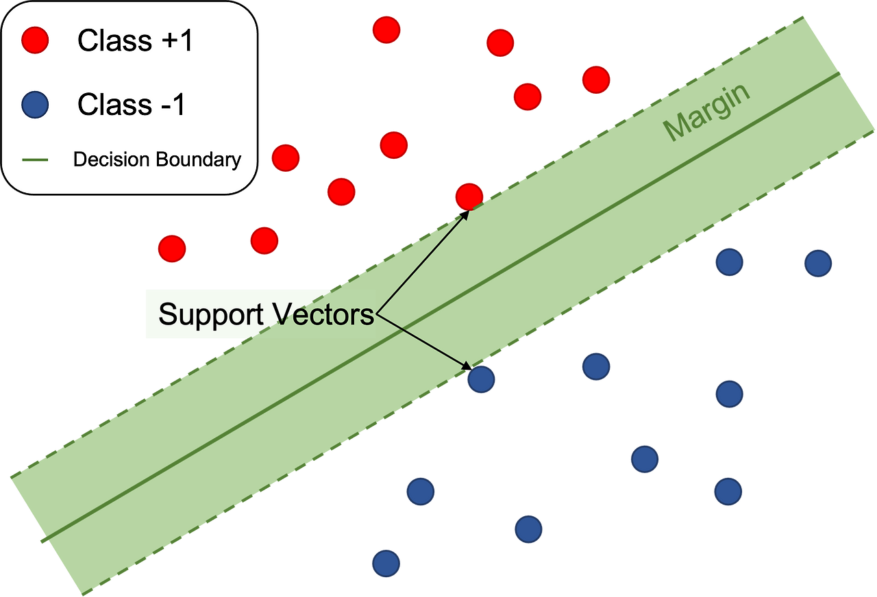 - SVM은 마진 최대화를 통해 최적의 클래스 구분 초평면을 찾습니다.