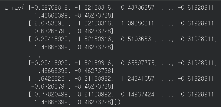 # # 학습 데이터 기준으로 평균과 표준편차를 계산하고 변환